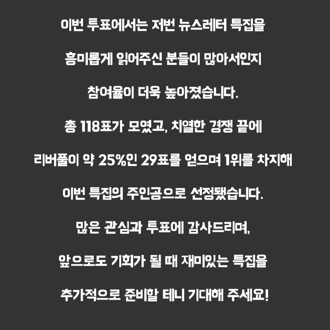 ๋ฆฌ๋ฒํ์ ์์ง์ ์ธ ์์์ธ ๋ถ์์์ ์ด์ ๊ณผ ์ญ๋์ฑ์ ์๋ฏธํ๋ฉฐ, ํ๊ตฌ์ฅ ์ํ๋์ ํฌ๋ค์ ์์ ๋ฌธํ๋ ๋ฆฌ๋ฒํ์ ํน๋ณํ๊ฒ ๋ง๋ ๋ค. โYouโll Never Walk Aloneโ ๊ตฌํธ ์๋ ํฌ๋ค๊ณผ ํจ๊ปํ๋ ๋ฆฌ๋ฒํ์ ์ ์ธ๊ณ์ ๊น์ ์ธ์์ ๋จ๊ฒผ๋ค.